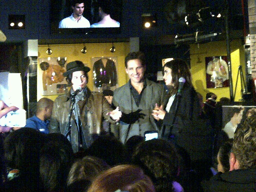 Peter Facinelli, Nikki Reed e Jackson Rathbone no evento de Lançamento do "Twilight Forever: The Complete Saga" em DVD/Blu-ray no Planet Hollywood, em Times Square, Nova York.
