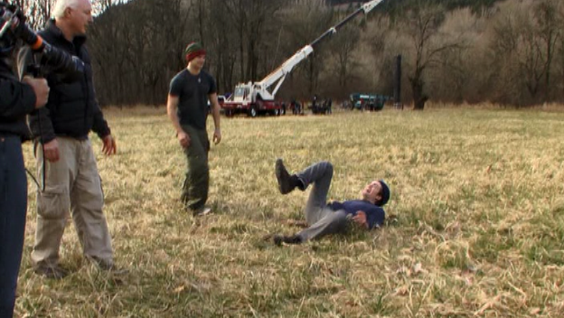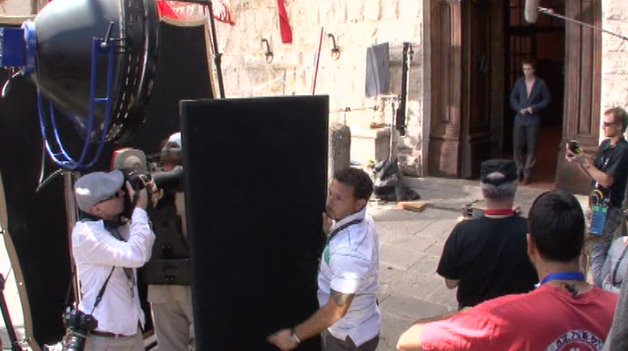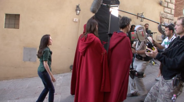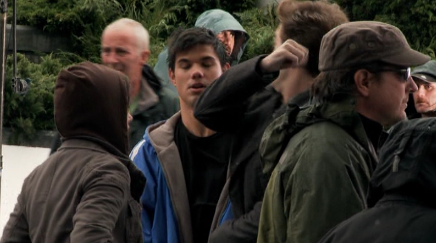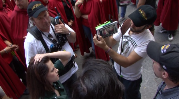 A equipe mostrando Kristen nas filmagens de como estava apesar da multidão.