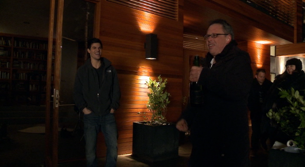 "Então acabou Amanhecer" - Bill aparecendo um pouco de champanhe para celebrar